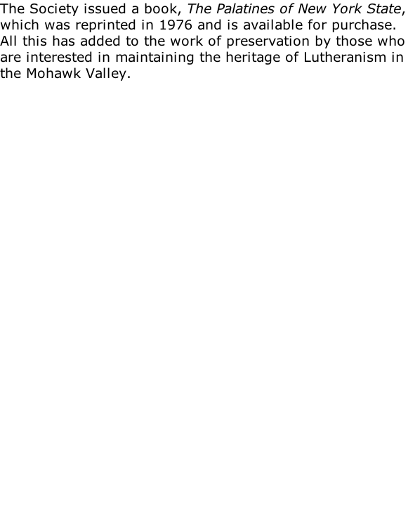 The Old Palatine Church The Shrine of Lutheranism in the Mohawk Valley Founded 1749 – Erected 1770  Located on Bypass of Route 5, Between Nelliston and St. Johnsville (At the intersection of Route 5 and Palatine Church Road) The Palatine Society: Page 4 of 5 Go to page 5